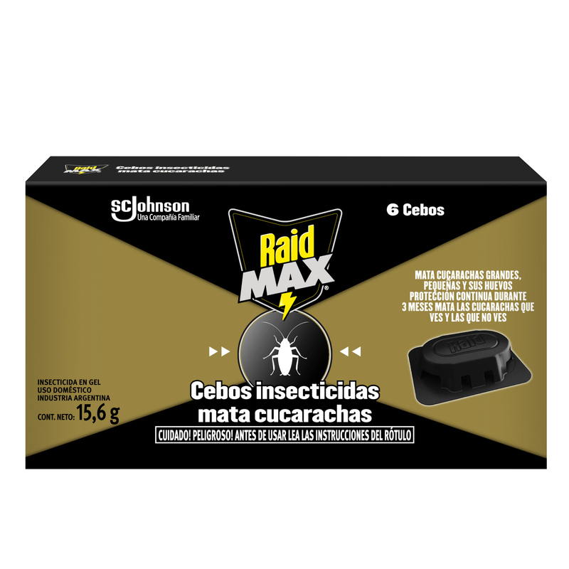 Raid Max Cebos es parte de la línea Raid para protección completa de la cocina. Combínalo con el aerosol Raid Cocina mata cucarachas y hormigas para máxima efectividad. Mantén tu hogar libre de plagas con la garantía de calidad Raid.