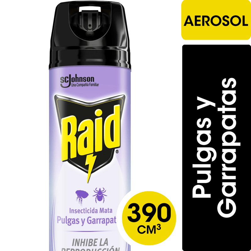 Insecticida en Aerosol Mata Pulgas y Garrapatas Raid 390 cc