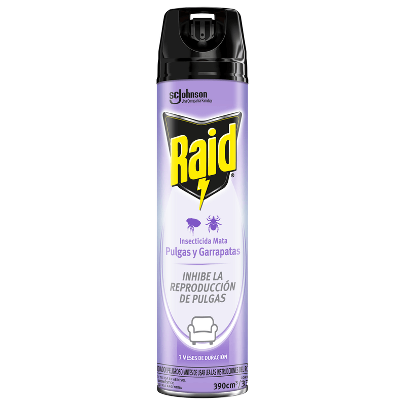 Raid Mata Pulgas y Garrapatas es el insecticida en aerosol que destierra pulgas y garrapatas actuando de forma inmediata en áreas de tu hogar que funcionan como fuente de contagio. Su fórmula avanzada elimina eficazmente las pulgas y garrapatas, protegiendo alfombras, sillones, tapizados, cortinas y zócalos. Raid mata pulgas ofrece una solución integral para mantener tu casa libre de infestaciones.
