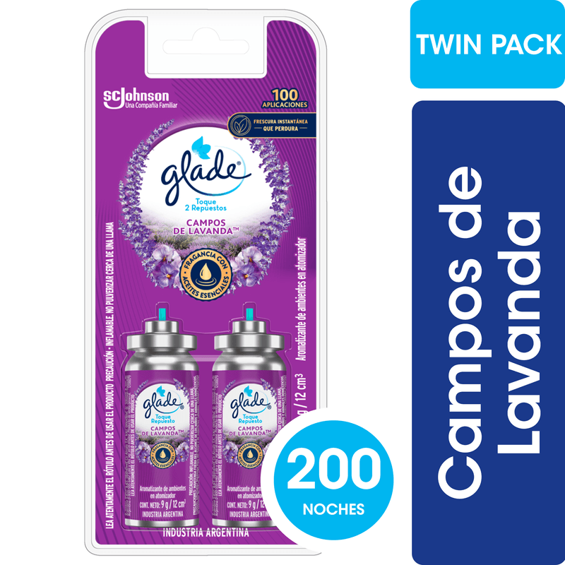 El repuesto para aromatizante Glade Toque Lavanda transforma tu hogar con su fragancia. Disfrutá de un hogar fresco y perfumado con este aromatizador Glade. Sus notas de lavanda floreciente, bergamota y hierbas frescas se mezclan creando una experiencia agradable. Rinde hasta 100 aplicaciones para mantener tus ambientes perfectamente aromatizados.