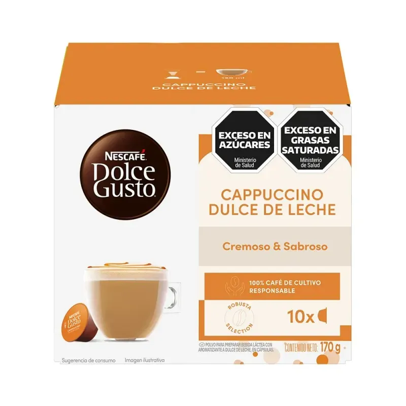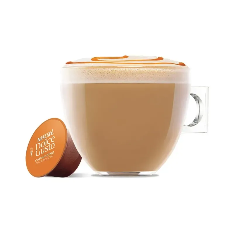 Cafe en Capsulas Cappuccino DDL Nescafe Dolce Gusto 170 gr 10 cap Disfrutá de un café espresso de calidad profesional con las Cápsulas Espresso Dolce Gusto. Con una mezcla perfecta de aromas y sabores intensos, estas cápsulas son ideales para los amantes del café que buscan comodidad y sabor en cada taza.
