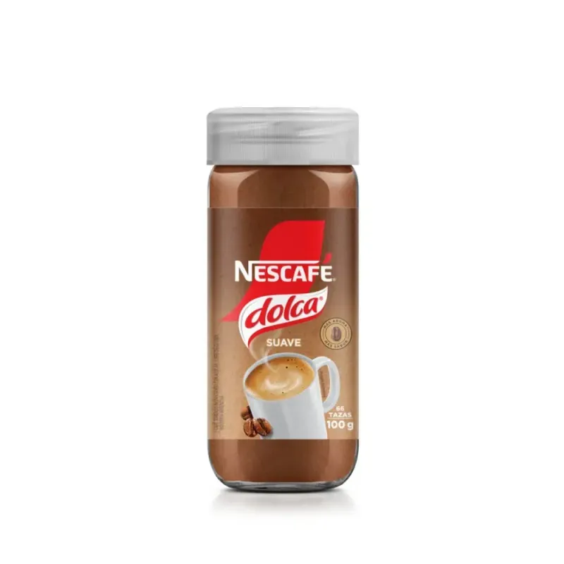 Cafe Instantaneo Suave Nescafe Dolca Frasco 100 gr Disfrutá ese sabor suave que te acompaña todos los días. NESCAFÉ® Dolca Suave es el clásico argentino que elegís para compartir en familia, con el equilibrio justo entre cuerpo y dulzura. Este es el momento de disfrutar lo de siempre, con más conciencia.