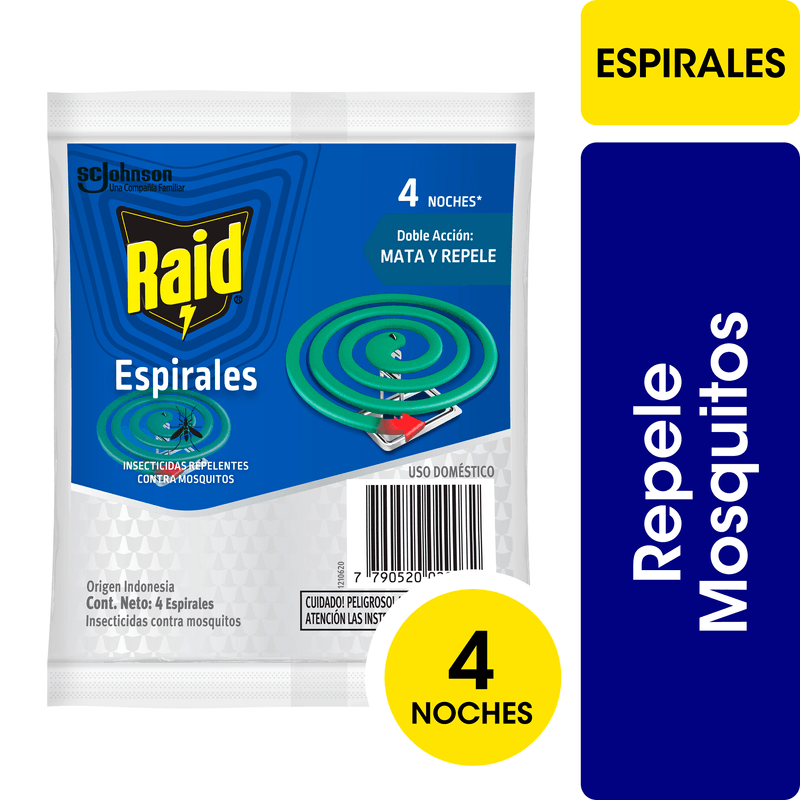 Raid Espirales ofrece máxima efectividad para ahuyentar los mosquitos por hasta 8 horas.